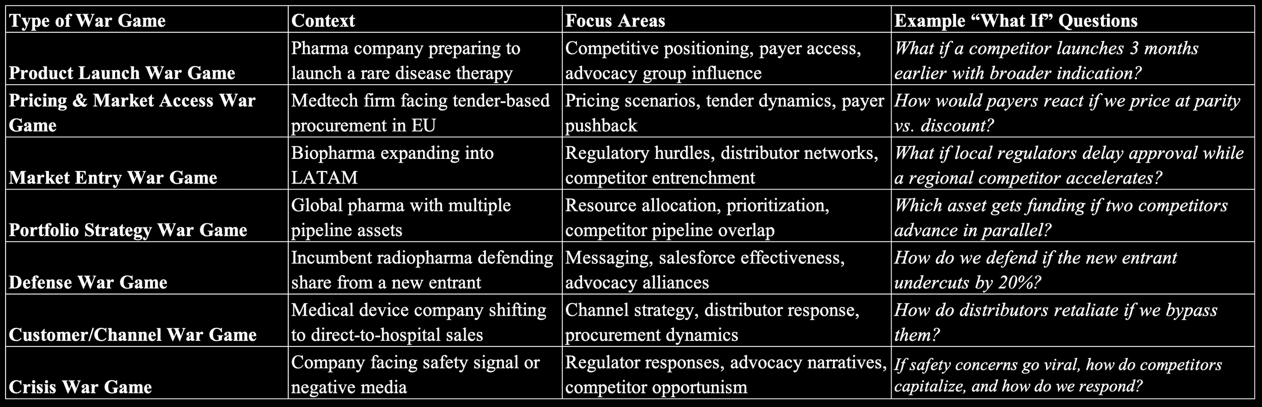 The result is a low-risk environment where leadership teams can test, refine, and pressure-proof their commercial plans. With war gaming, it’s always better to lose in the simulation room than in the marketplace.
